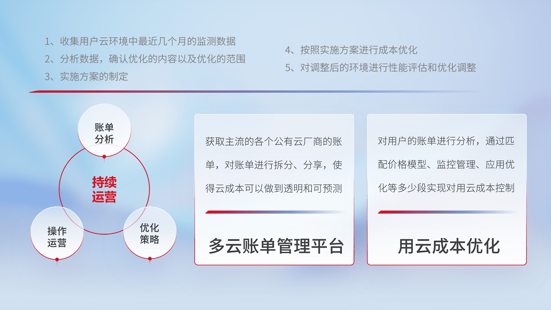 监控业务系统资源开销,,,,对资源的消耗精确计量,,实现费用的透明化管理,,,不断提升资源使用率,,,,调整资源购买方式,,,,降低资源费用成本,,,用云成本可预测、、、用云费用可优化,,云资源配额有据可依。。